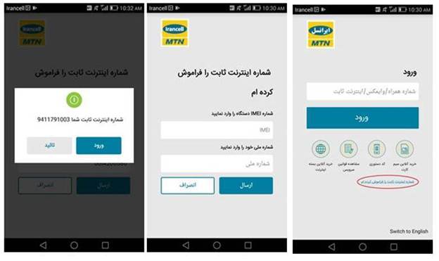 همچنین آن دسته از مشترکان ایرانسل که کاربر این نرم افزار کاربردی نیستند نیز میتوانند از طریق صفحه ورود این نرم افزار و کلیک روی لینک «شماره اینترنت ثابت را فراموش کردهام» به شماره TD-LTE خود دسترسی پیدا کنند: