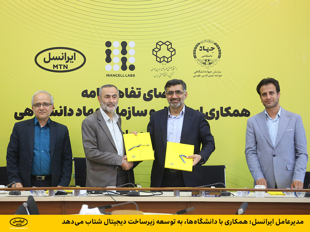مراسم امضای تفاهمنامه بین ایرانسل و سازمان جهاد دانشگاهی، ظهر چهارشنبه اول شهریور ۱۴۰۲، با حضور دکتر یعقوب فتحاللهی نایبرئیس و معاون پژوهش و فناوری سازمان جهاد دانشگاهی، دکتر حبیبالله اصغری رئیس جهاد دانشگاهی خواجه نصیر الدین طوسی، دکتر حمید ابریشمیمقدم رئیس دانشکده مهندسی برق دانشگاه صنعتی خواجه نصیر الدین طوسی، دکتر بیژن عباسیآرند مدیرعامل ایرانسل و جمعی از مدرسان و اعضای هیئت علمی دانشکده برق دانشگاه خواجه نصیر الدین طوسی، در سالن همایشهای دانشکده برق این دانشگاه برگزار شد.