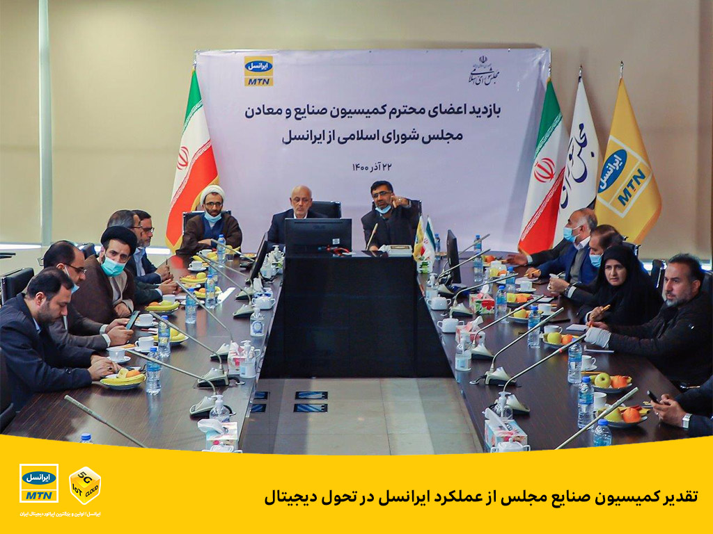 رئیس، هیأت رئیسه و جمعی از اعضای کمیسیون صنایع مجلس شورای اسلامی، صبح دوشنبه ۲۲ آذر ۱۴۰۰، با حضور در ساختمان مرکزی ایرانسل، با دکتر بیژن عباسیآرند مدیرعامل و جمعی از مدیران ایرانسل دیدار و گفتوگو کردند و با جدیدترین اقدامات و فعالیتهای ایرانسل در توسعۀ زیرساختهای شبکۀ ملی اطلاعات و ارائۀ خدمات دیجیتال، آشنا شدند.