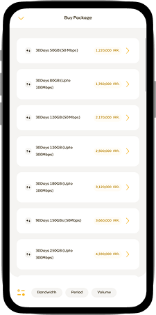 | Volume | Deadline | Speed | Price in Toman (VAT included) |