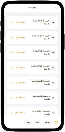 | حجم بسته | مهلت استفاده | سرعت | قیمت به تومان (با احتساب مالیات) |