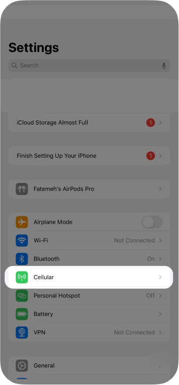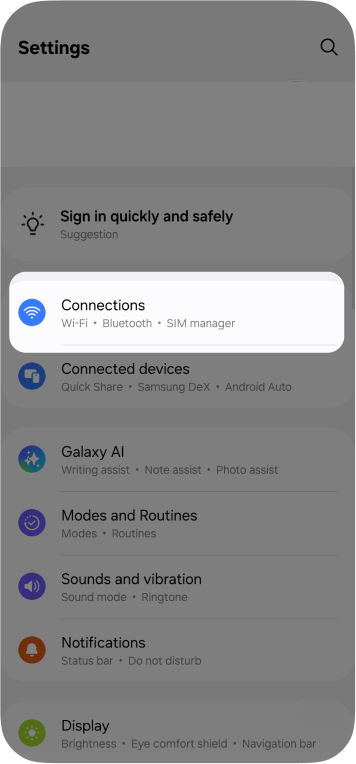 - گزینه اتصالات یا شبکههای موبایل (Connections / Mobile Network) را انتخاب کنید.