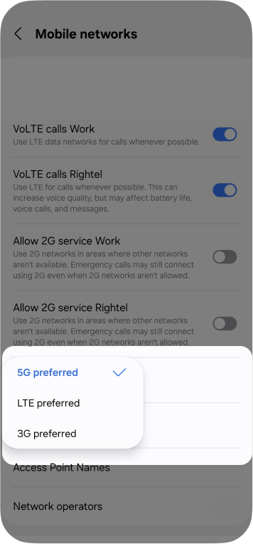 - گزینه 5G/4G/3G/2G (auto connect) یا مشابه را انتخاب کنید.
